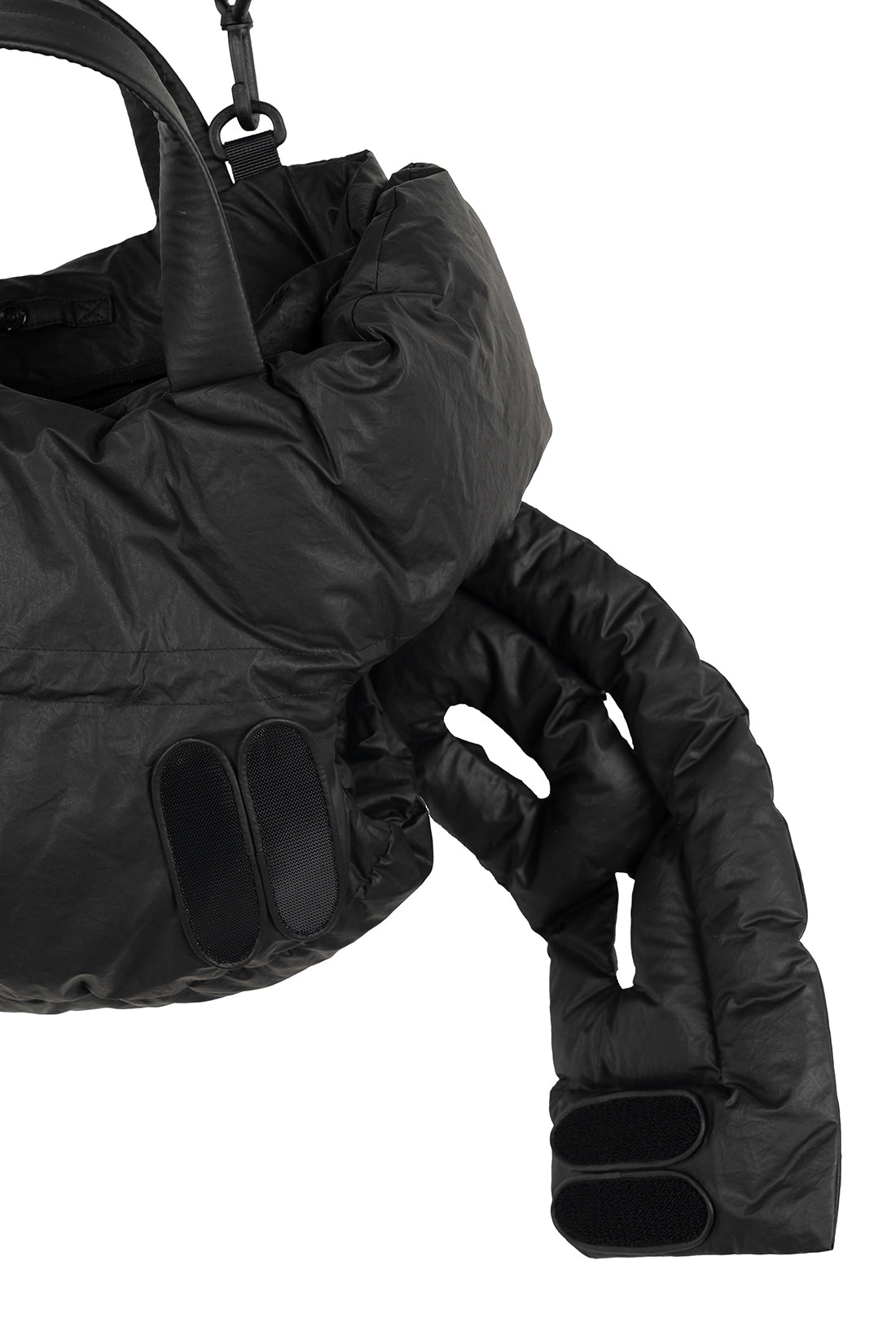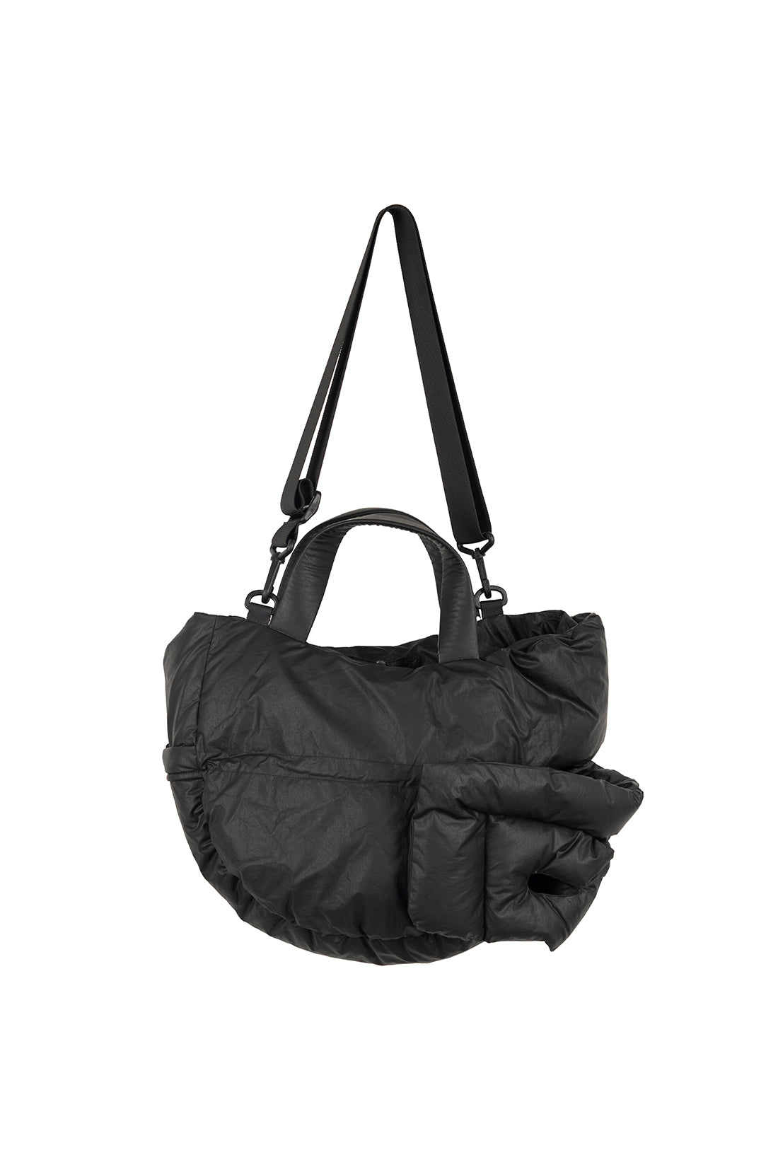 MATERIAL : Fill 1: 80% white duck down, 20% goose feather. / Body 1: 100% cotton. Body 2: 100% polyurethane. / Fill 2: 100% polyester. Lining: 100% cotton.